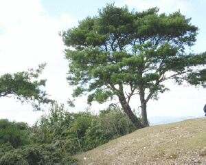雪の時と全く違う姿の山頂です。樹氷の1本あった木は松ノ木でした。