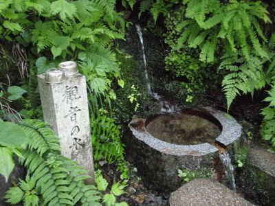 途中、山の切れ目の道に「観音の水」が岩から湧き出ている。
