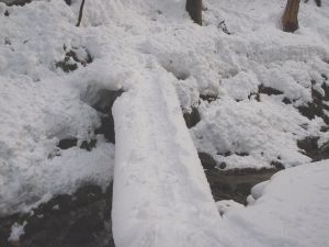 小さな橋渡りますが、雪で分かりにくくなっていて探りながら渡った。