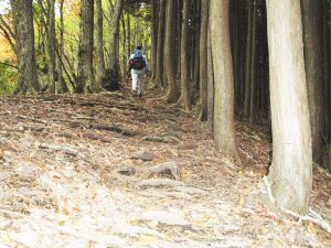 気持ち良い山だが、再び桧の根っこの登りが続き、感動に浸っている暇が無い。